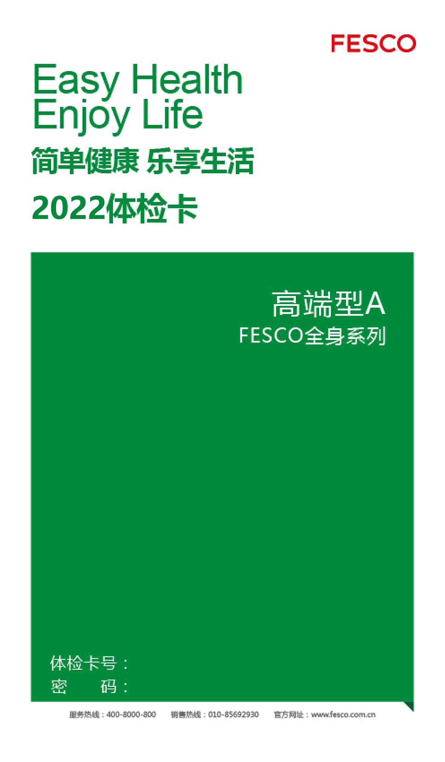 標準體檢卡產(chǎn)品類型